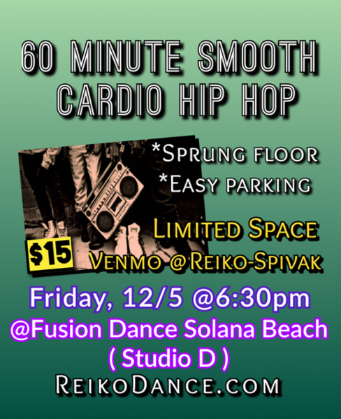 *60 minute Smooth Cardio Hip Hop - Friday, 12/5 @6:30pm