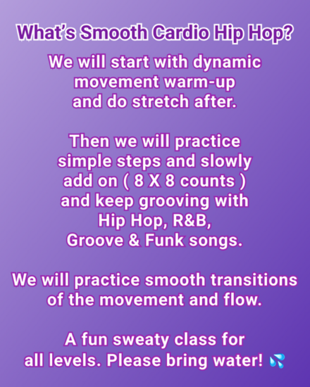 *75 minute Smooth Cardio Hip Hop - Friday, 4/3 @10am